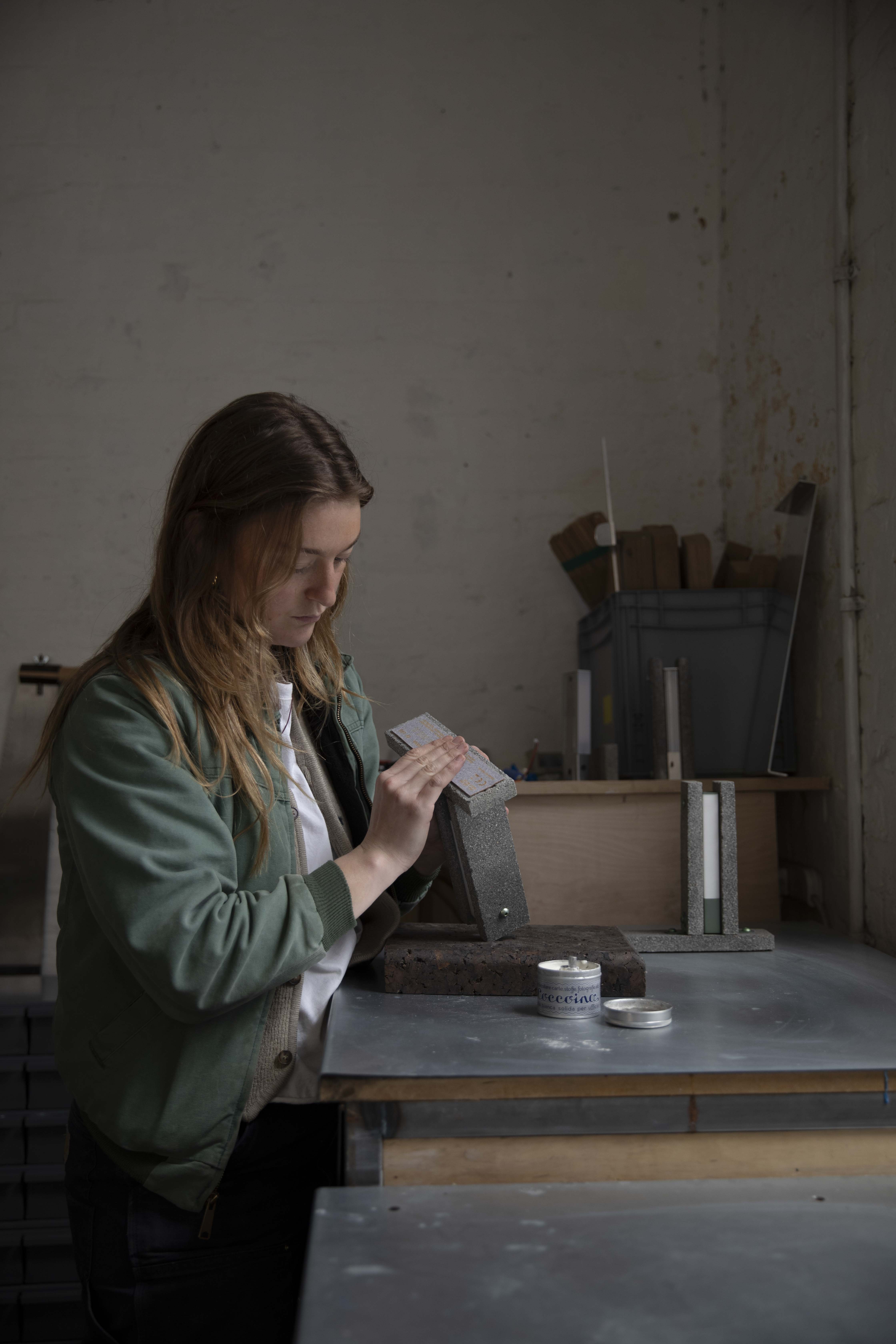 Designed to showcase Biomason’s biobased concrete, the Gathering Lamp brings the material into a new context. The manufacturing process ensures minimal material waste.